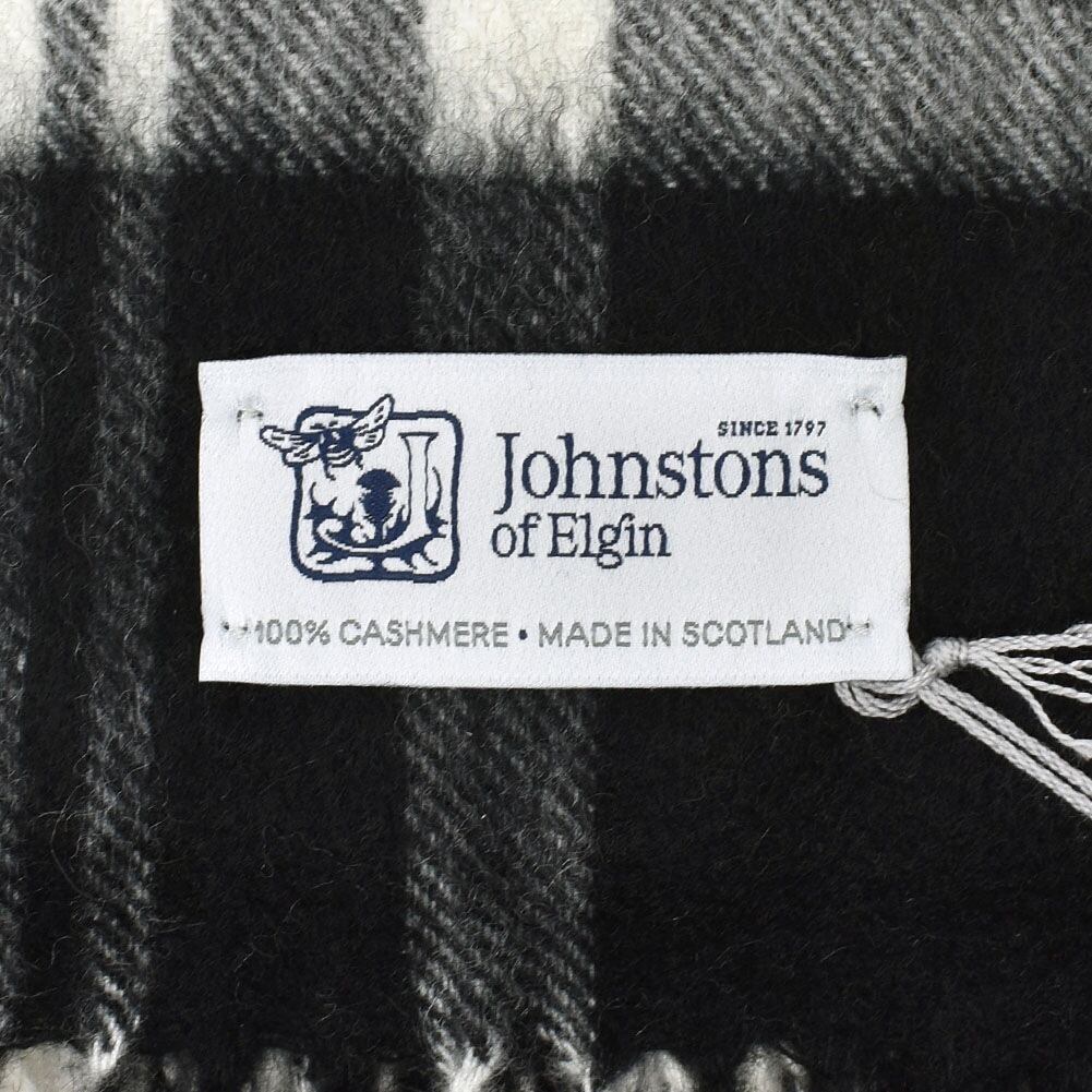 Johnstons WA000056 KU0079 WA56 Woven Tartan Check Stole ジョンストンズ 大判 ストール マフラー スカーフ カシミア タータンチェック レディース メンズ Black & White Stewart | LIG-jp