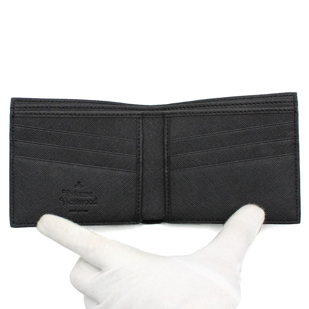 Vivienne Westwood SAFFIANO MAN BILLFOLD WALLET 51120008U S000B N401 BLACK ヴィヴィアン ウエストウッド 二つ折り 財布 ウォレット コンパクト メンズ ブラック